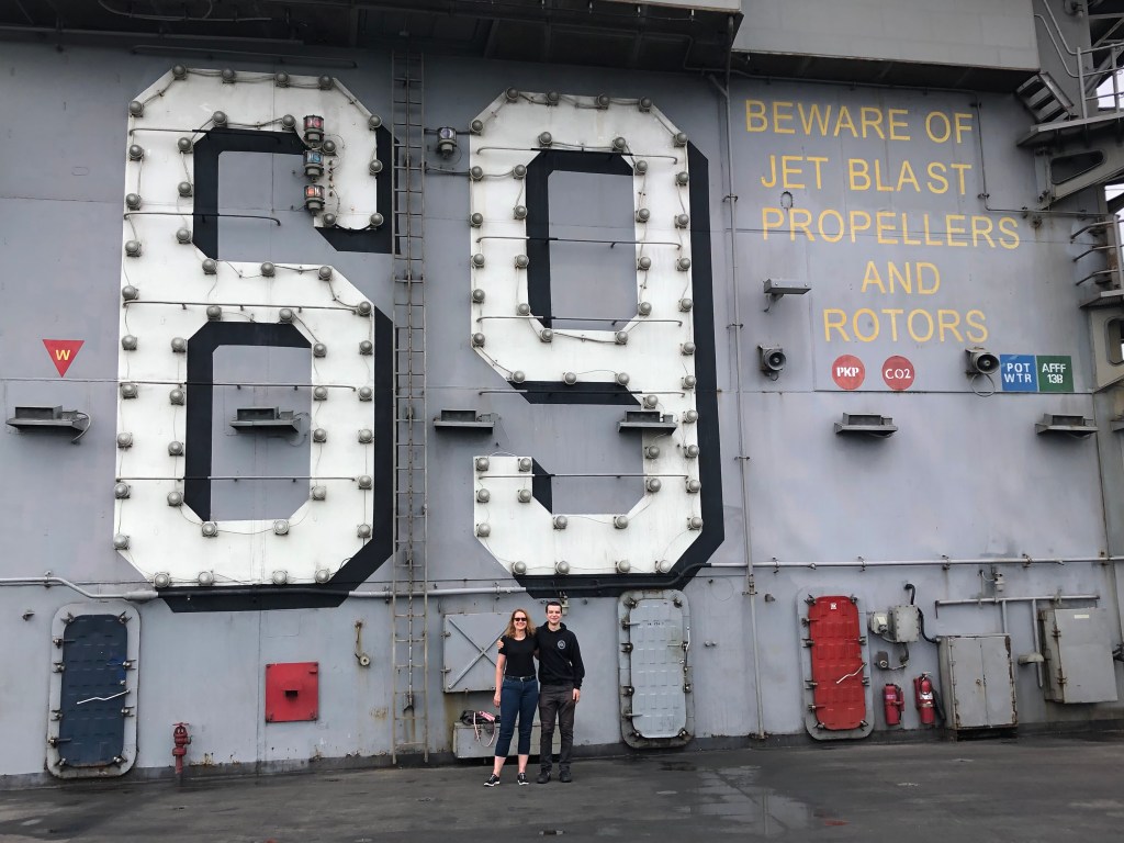 There’s a big homecoming ceremony at the Naval base, set up to welcome 3000+ sailors and officers back from their journey. My sister and I skipped it, on the advice of Son. It was blazing hot and we’d have to take a shuttle bus. That, and just try to pick out anyone in a sea of identical white dress uniforms. Son met us at our hotel instead, where he’d join us for a couple of days. Since I hadn’t seen Son since December 2019, I was a bit emotional and squeezed the life out of him. My sister got a little teary-eyed too.